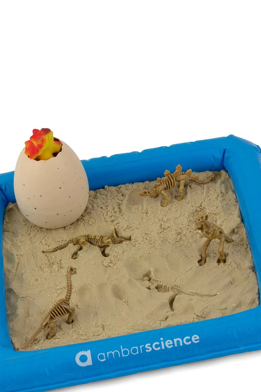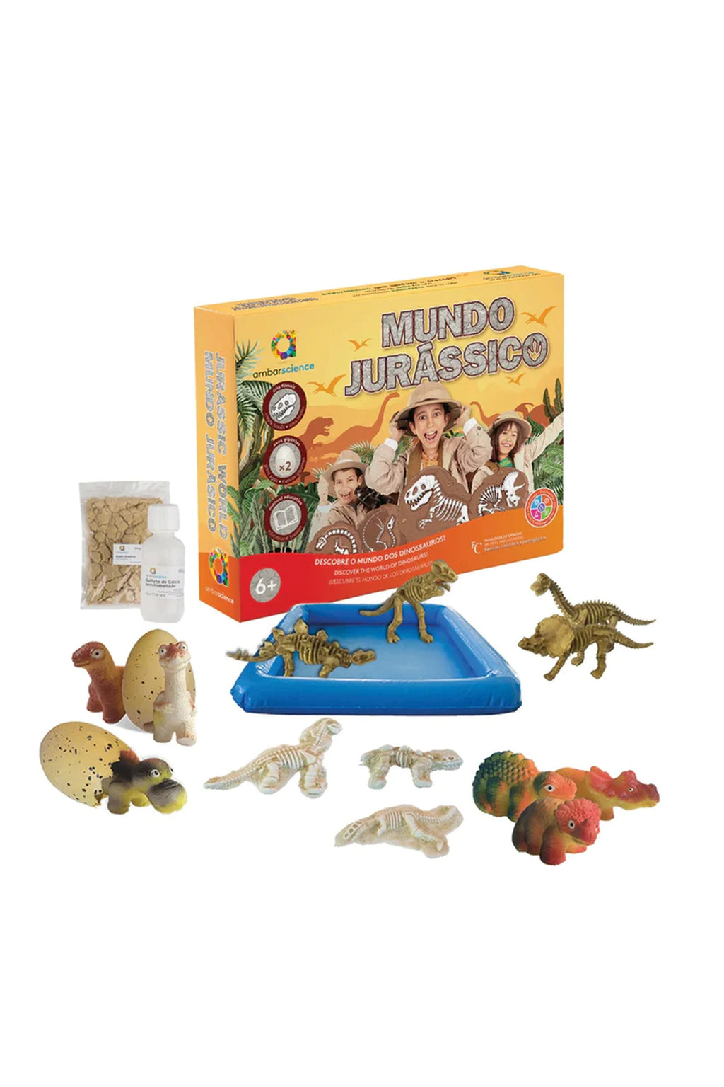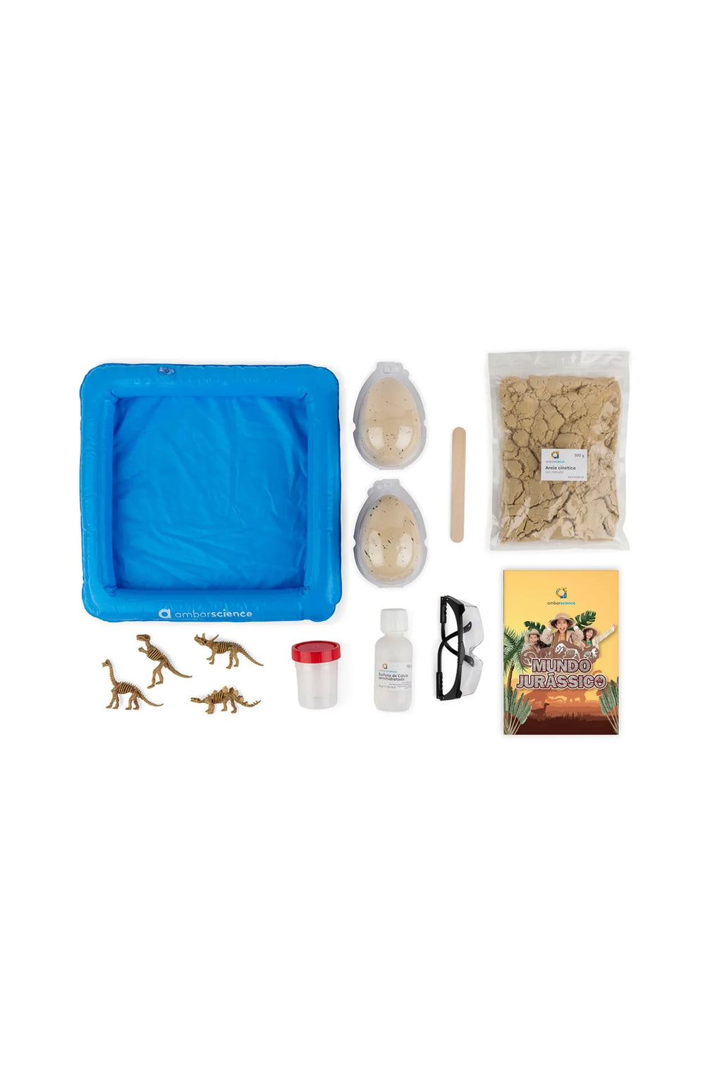 Torna-te num paleontólogo e descobre tudo sobre os dinossauros! Com este kit vais poder criar fósseis e brincar com areia mágica. Inclui 2 ovos jurássicos gigantes de onde vão nascer os teus dinossauros, gesso, 4 modelos de dinossauros, tabuleiro insuflável, areia cinética, copo de plástico, espátula, óculos de proteção e manual educativo.