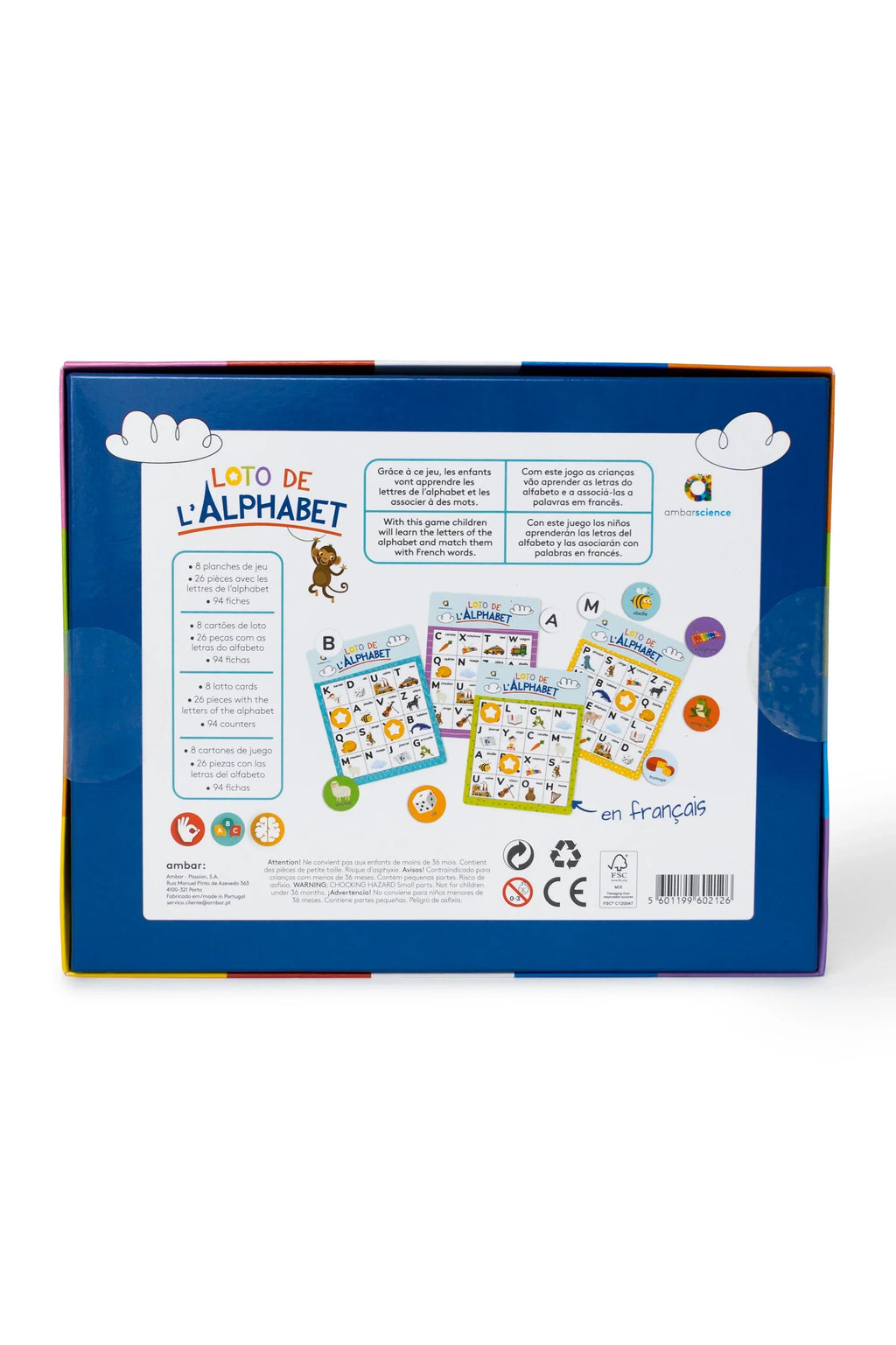 Com o Loto de L'Alphabet vais aprender as letras do alfabeto e a associá-las a palavras e imagens em francês. Este é um jogo muito completo que vai proporcionar divertidos momentos de aprendizagem, podendo ser jogado por toda a família.