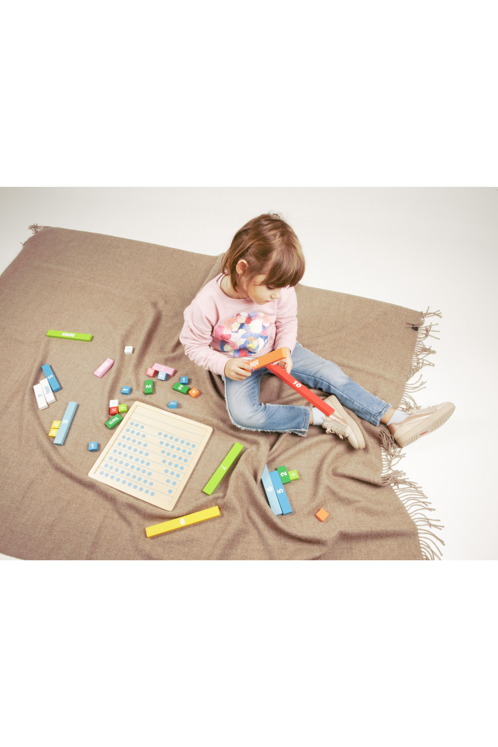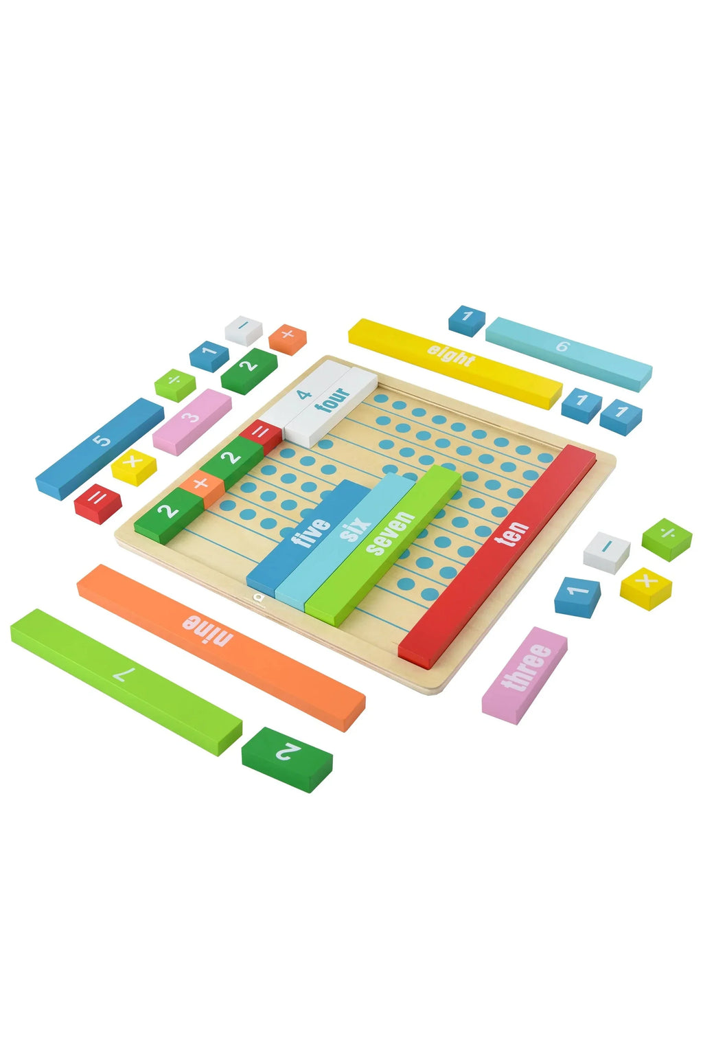 Aprende a somar, a subtrair, a multiplicar e a dividir de uma forma prática e intuitiva com este brinquedo super colorido. Funciona como um puzzle, e tens de encaixar as peças corretamente no tabuleiro para obteres os resultados das operações. De um lado das peças encontras os números e do outro o respetivo número em inglês. Inclui um tabuleiro e 32 peças em madeira e também um manual educativo com muitas sugestões.